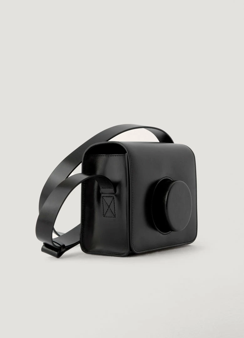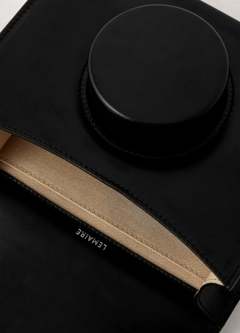 This bag is a LEMAIRE classic. Inspired by traditional camera bags, it is made of vegetable-tanned leather with a compact grain and a smooth finish. Its lens-shaped closure is entirely hand-molded. Its details include a cotton canvas lining with a patch pocket and an adjustable shoulder strap which can be worn as a crossbody.