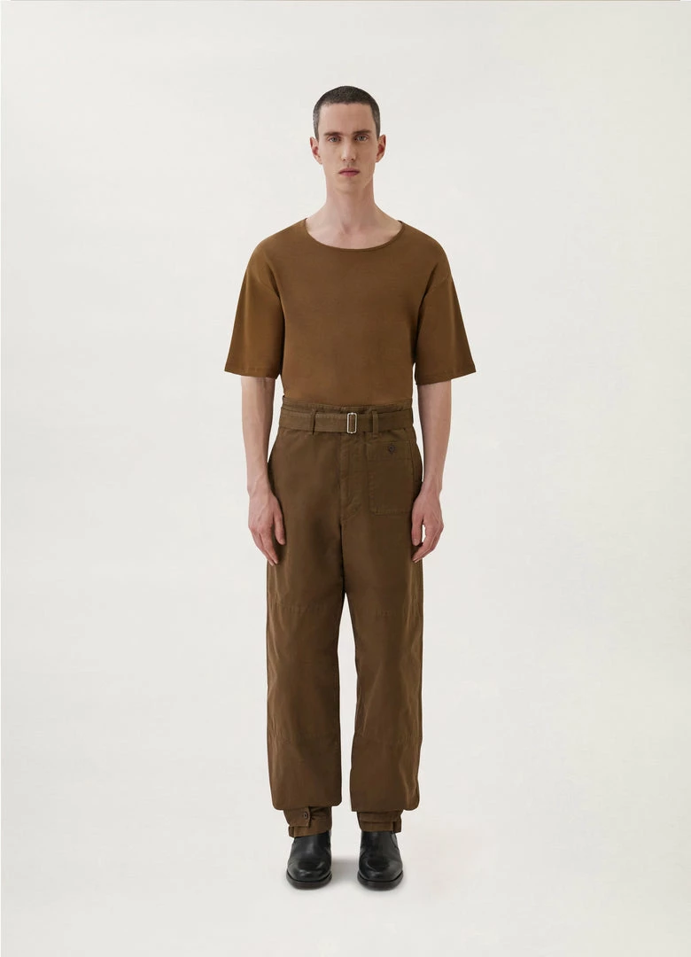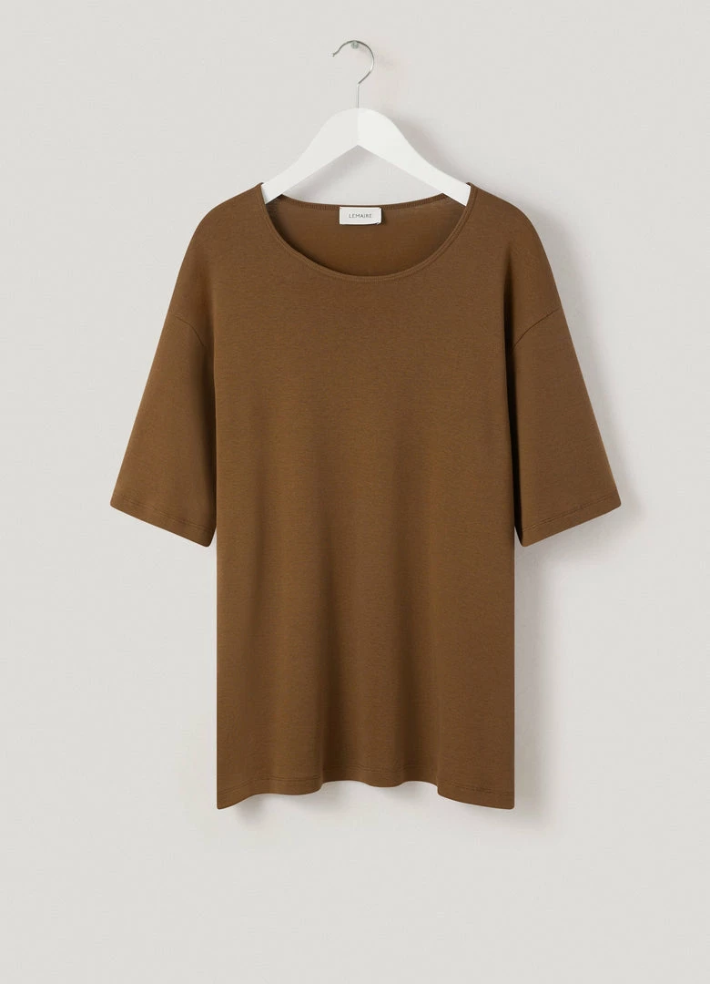 This t-shirt is made of a lightweight ribbed jersey with a dry hand. This classic Lemaire style has a relaxed fit, slightly dropped shoulders and short sleeves with minimal finishings. The open crew neck is finished with a ribbed binding detail.