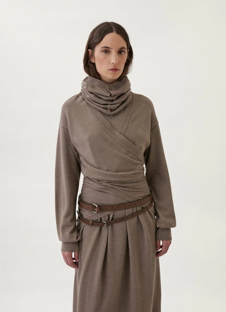This unisex belt is made of vegetable-tanned leather with a compact grain and a smooth finish. This new ‘one-size-fits-all’ features two different width belts held together by metal buckles finished with a leather roller, contrast stitching and creased edges.