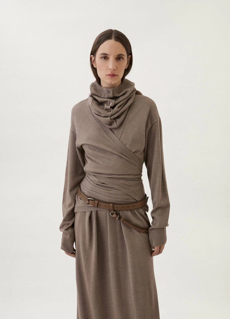 This unisex is made of vegetable-tanned leather with a compact grain and a smooth finish. This new style is composed of two different width belts. The thicker section features a mobile part that hangs when tied in, emulating an equestrian detail. The slimmer section is perforated to adjust to six sizes.