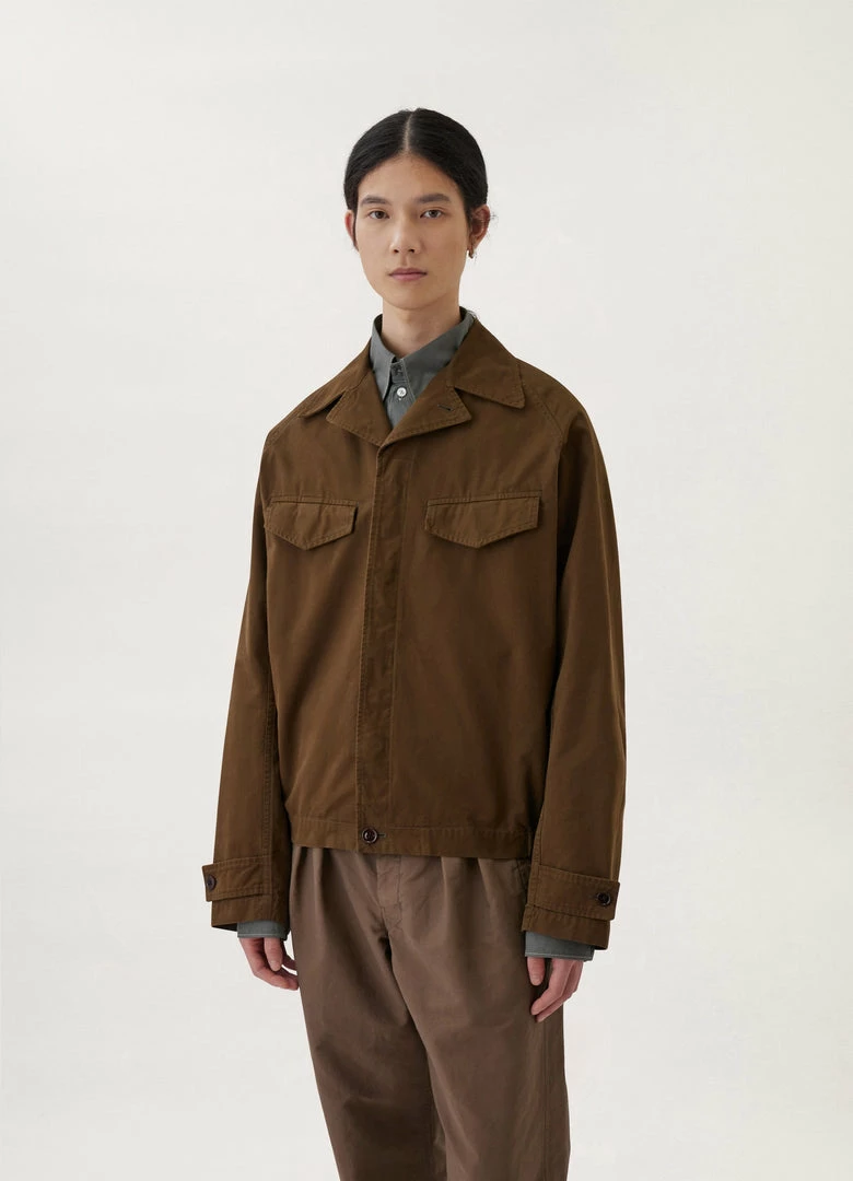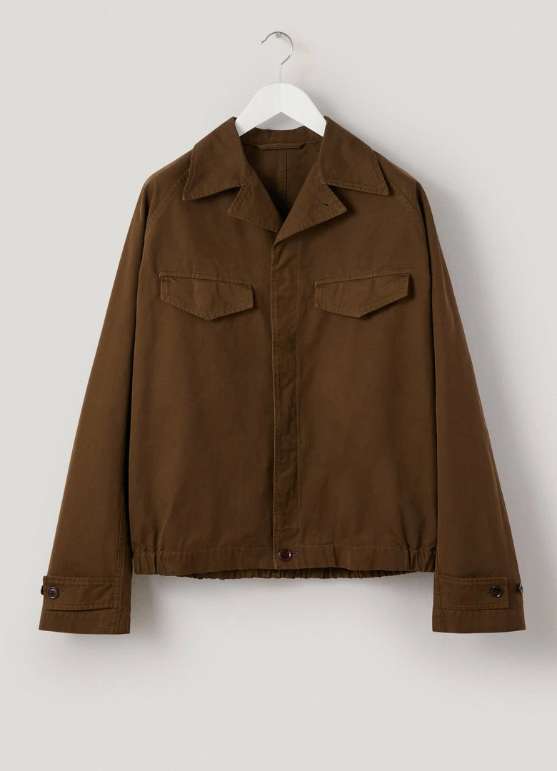 This garment-dyed over-shirt is made of cotton canvas with a soft hand and a workwear quality, lending itself well to casual tailoring. Its military-inspired details include a convertible notched collar, raglan sleeves, and diamond flap chest pockets. Other utility details include adjustable sleeve tabs, and an elasticated hem.