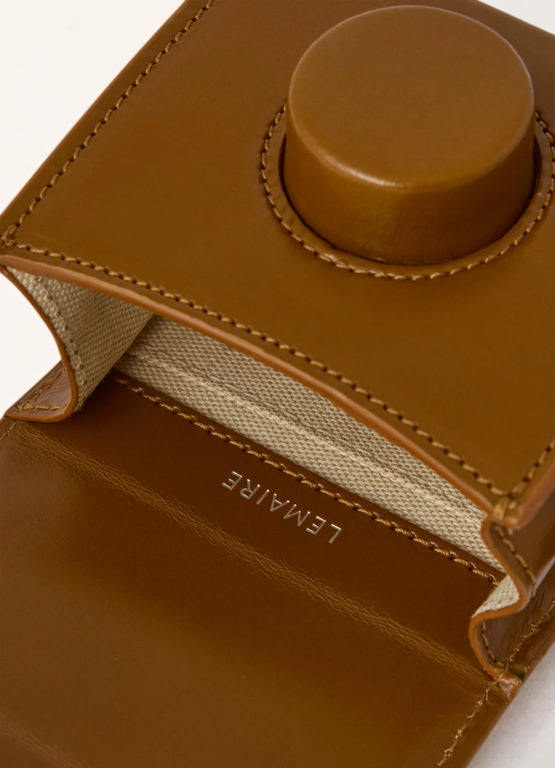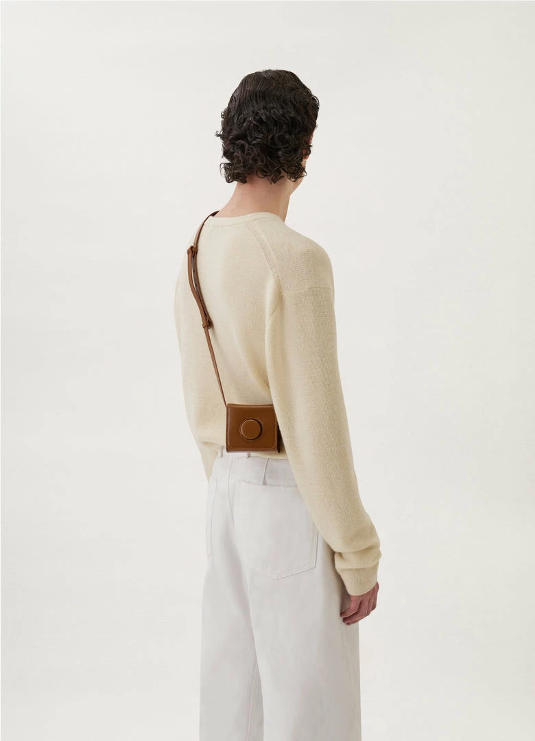 This bag is the miniature version of the classic Camera Bag.Inspired by traditional camera bags, it is made of vegetable-tanned leather. Its lens-shaped closure is entirely hand molded. Its details include a cotton canvas lining with a patch pocket, and an adjustable shoulder strap which can be worn around the neck or as a crossbody.