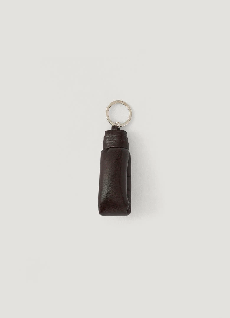 Inspired by the Croissant family, this keychain is made of smooth nappa leather with a soft touch. Its wadded leather zipper pull refers to the finishing detail on the LEMAIRE Croissant bag.